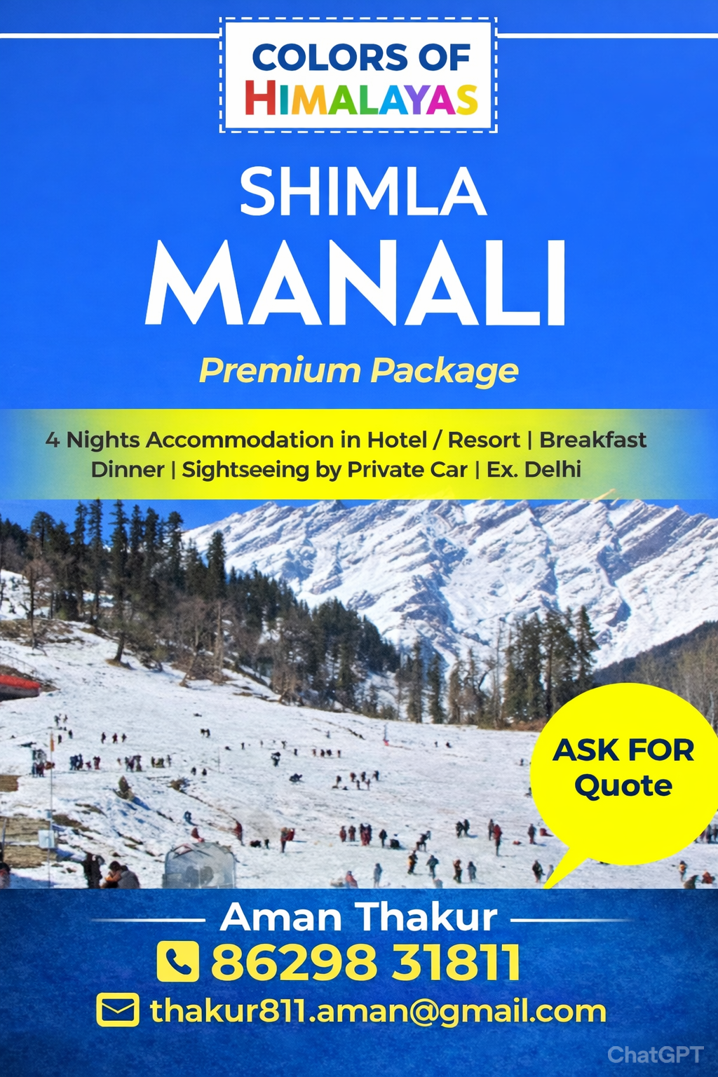 Experience the ultimate Himalayan getaway with a comprehensive Manali package, featuring breathtaking snow-capped peaks, lush valleys, and cozy stays. These 4-6 day, all-season, and honeymoon-friendly packages typically include AC Volvo transfers, guided sightseeing (Solang Valley, Rohtang Pass, Temples), and adventure activities like paragliding, skiing, and rafting.